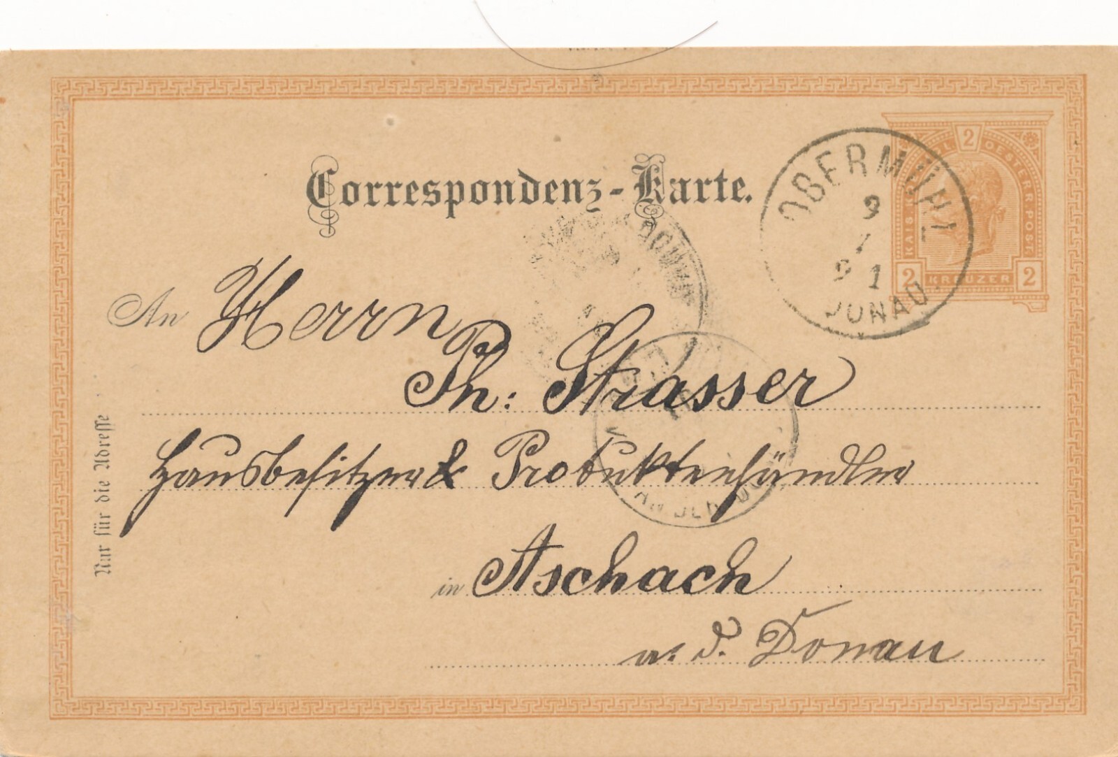 2 Kreuzer - Ganzsachen - Karte 1891 aus Obermühl (10668)