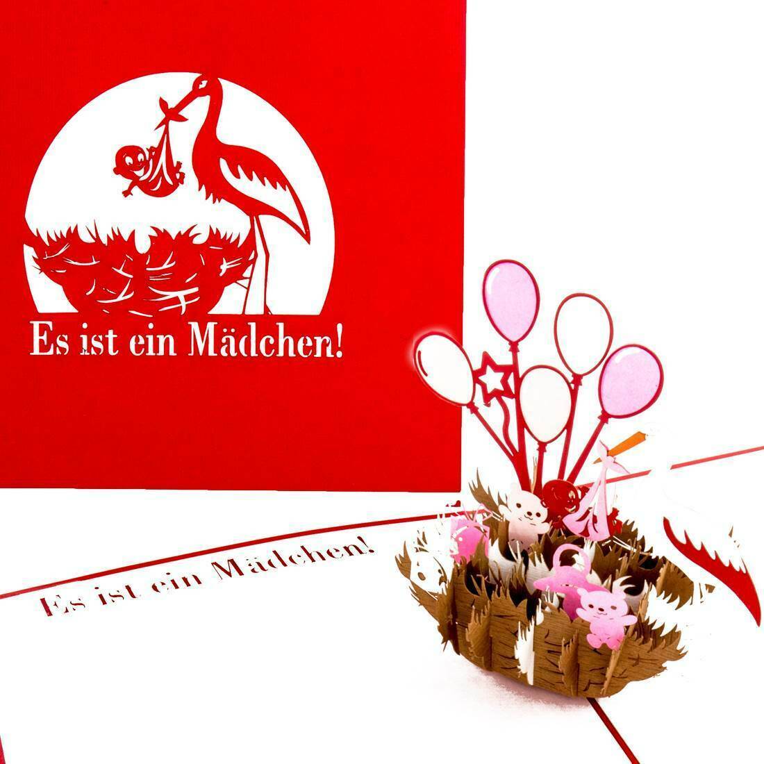 3D Pop Up Glückwunschkarte "Es ist ein Mädchen" Geburt 50029