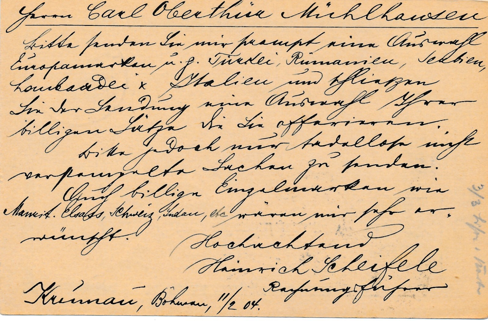 5 Heller - Ganzsachen - Karte 1904 aus Krumau (13362)