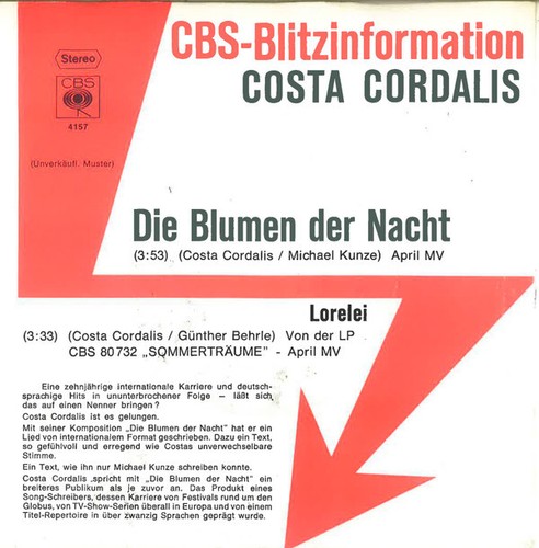 7", Single, Promo Costa Cordalis - Blumen Der Nacht