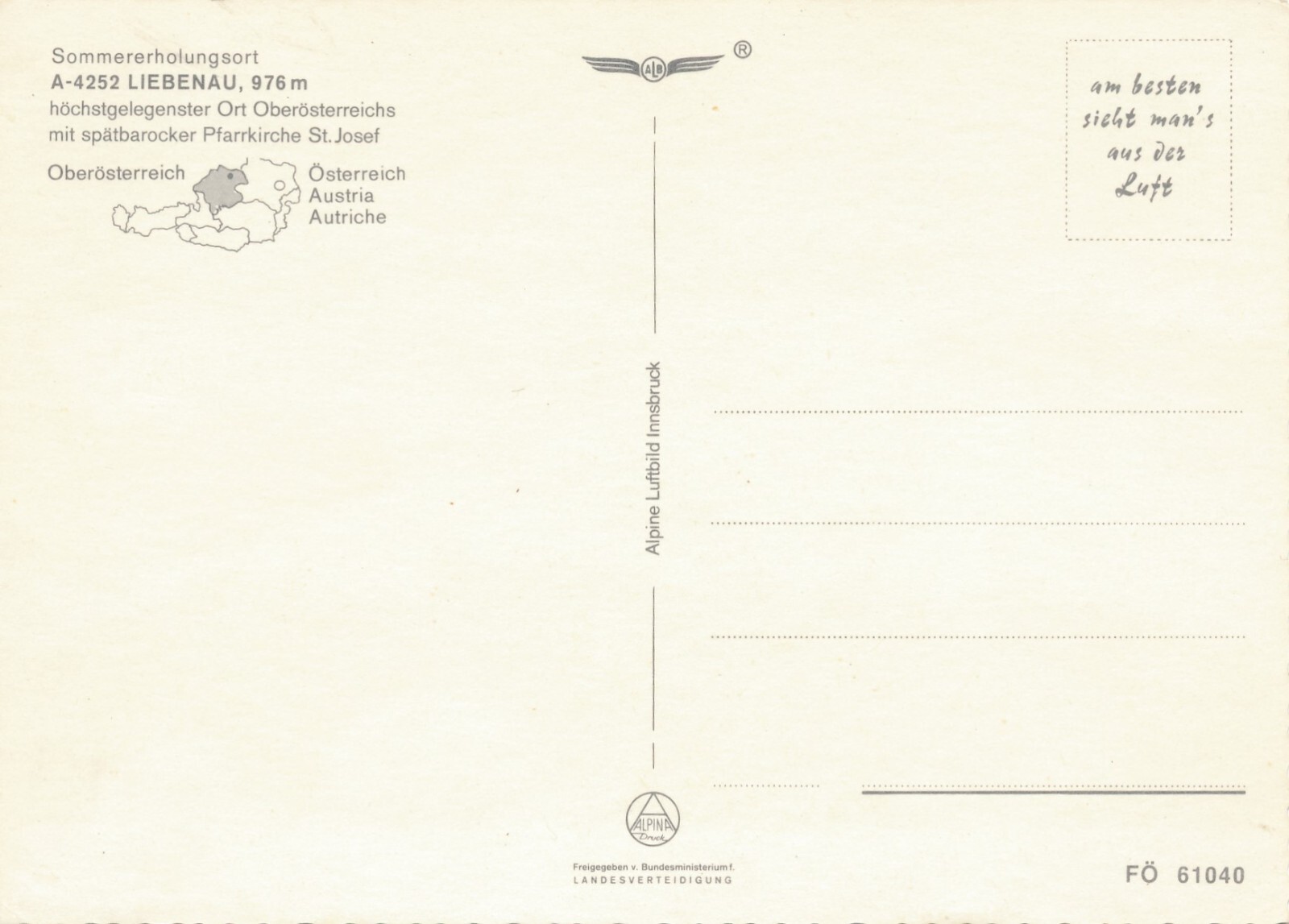 AK Alpine - Luftbild aus Liebenau Oberösterreich (10796)