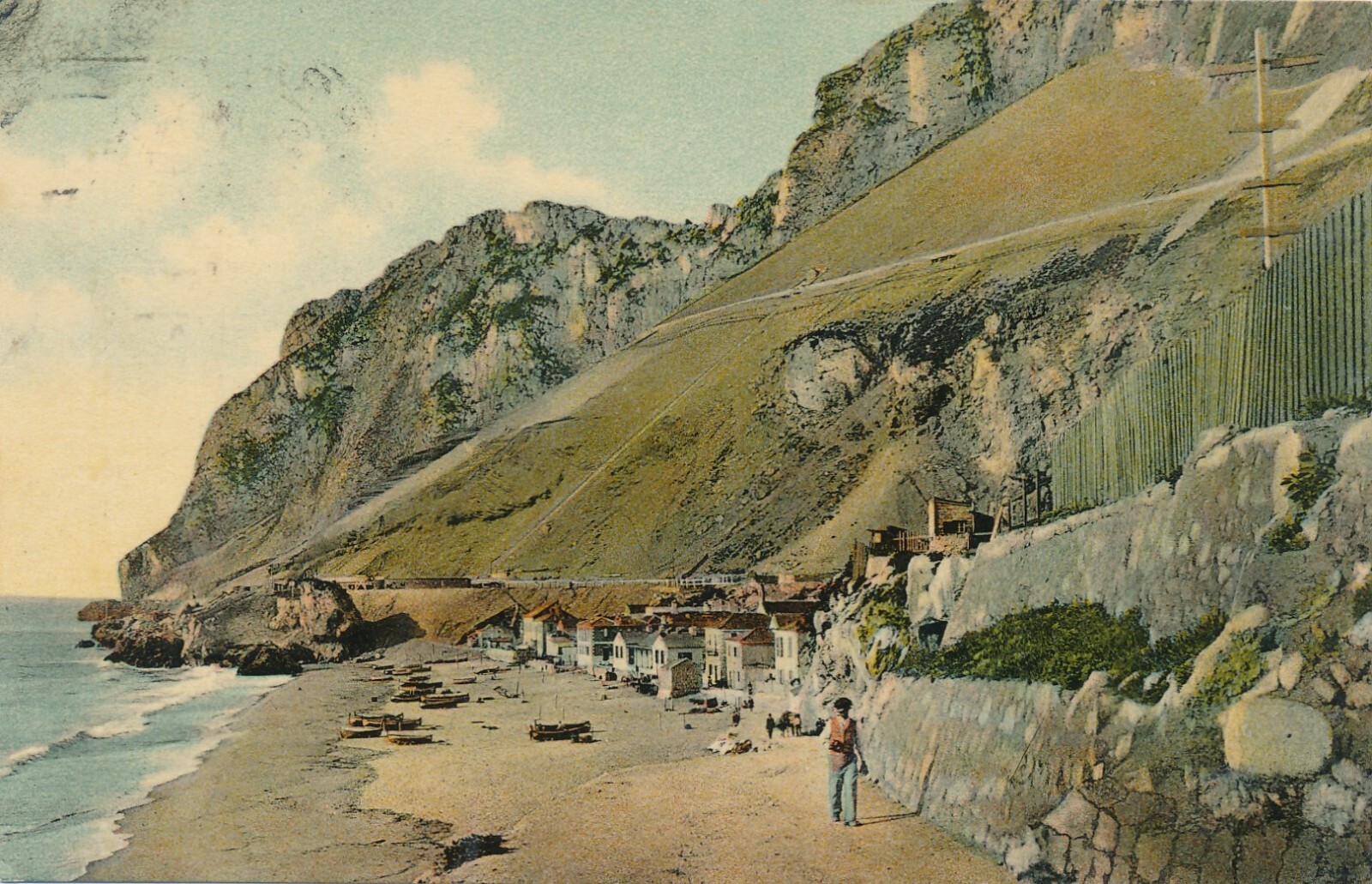 AK aus Gibraltar Catalan Bay Mann am Strand Ansichtskarte (14514)