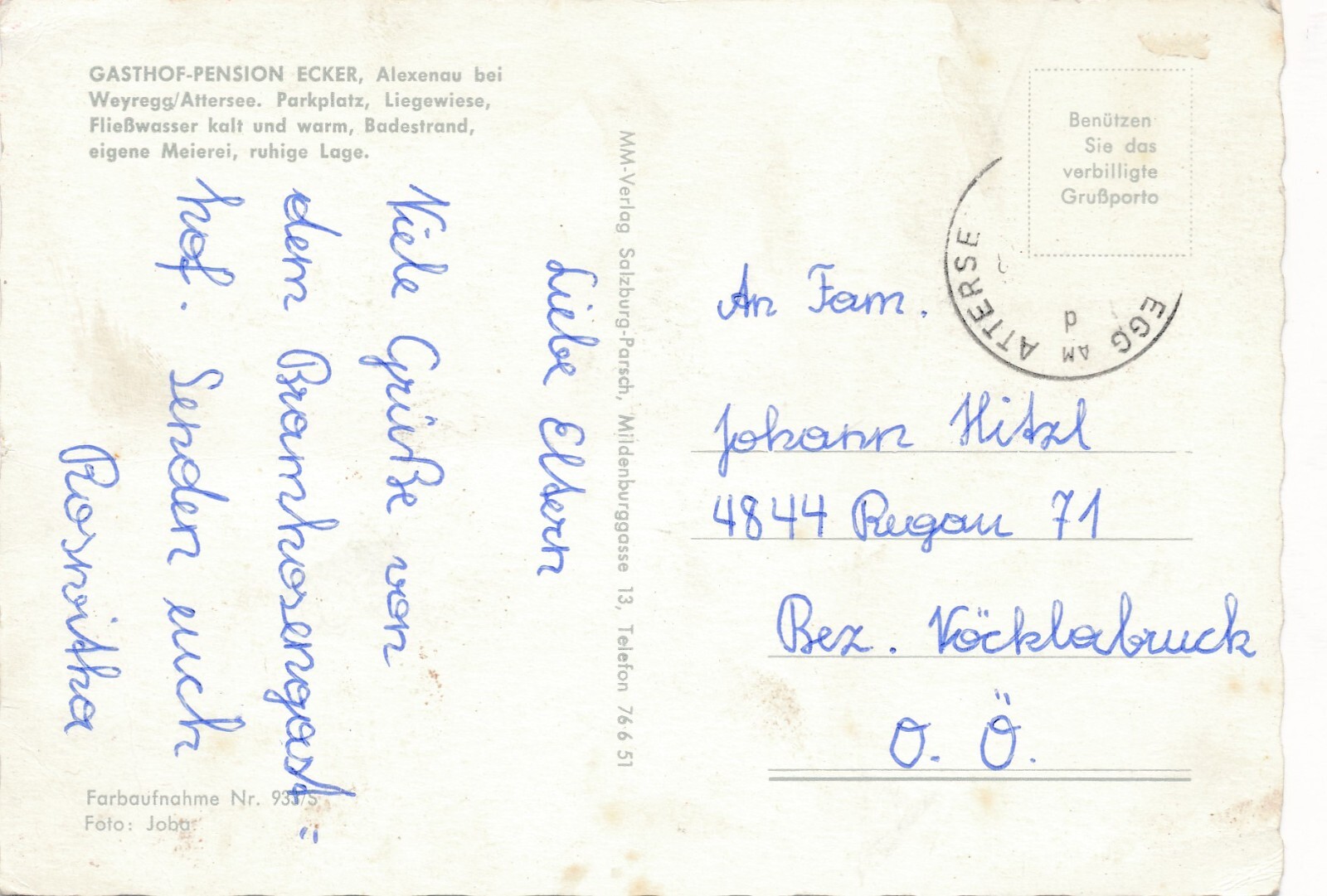AK aus Weyregg mit Pension Ecker Oberösterreich Ansichtskarte (9804)