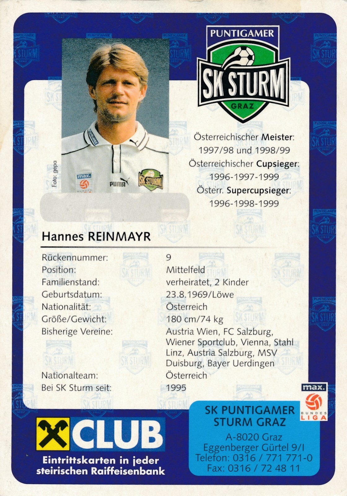 AK, Autogramm-Karte, Hannes Reinmayr, SK Sturm (S1626)