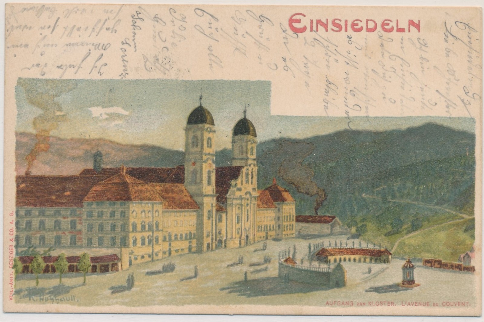 AK, Einsiedeln, Schweiz, Aufgang zum Kloster, L'Avenue du Couvent (S712)