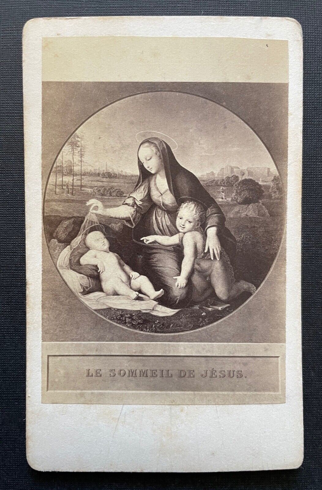 AK Foto Madonna m.d. schlafenden Kinde Raffael Bild Gemälde ca.10,1x6,2cm