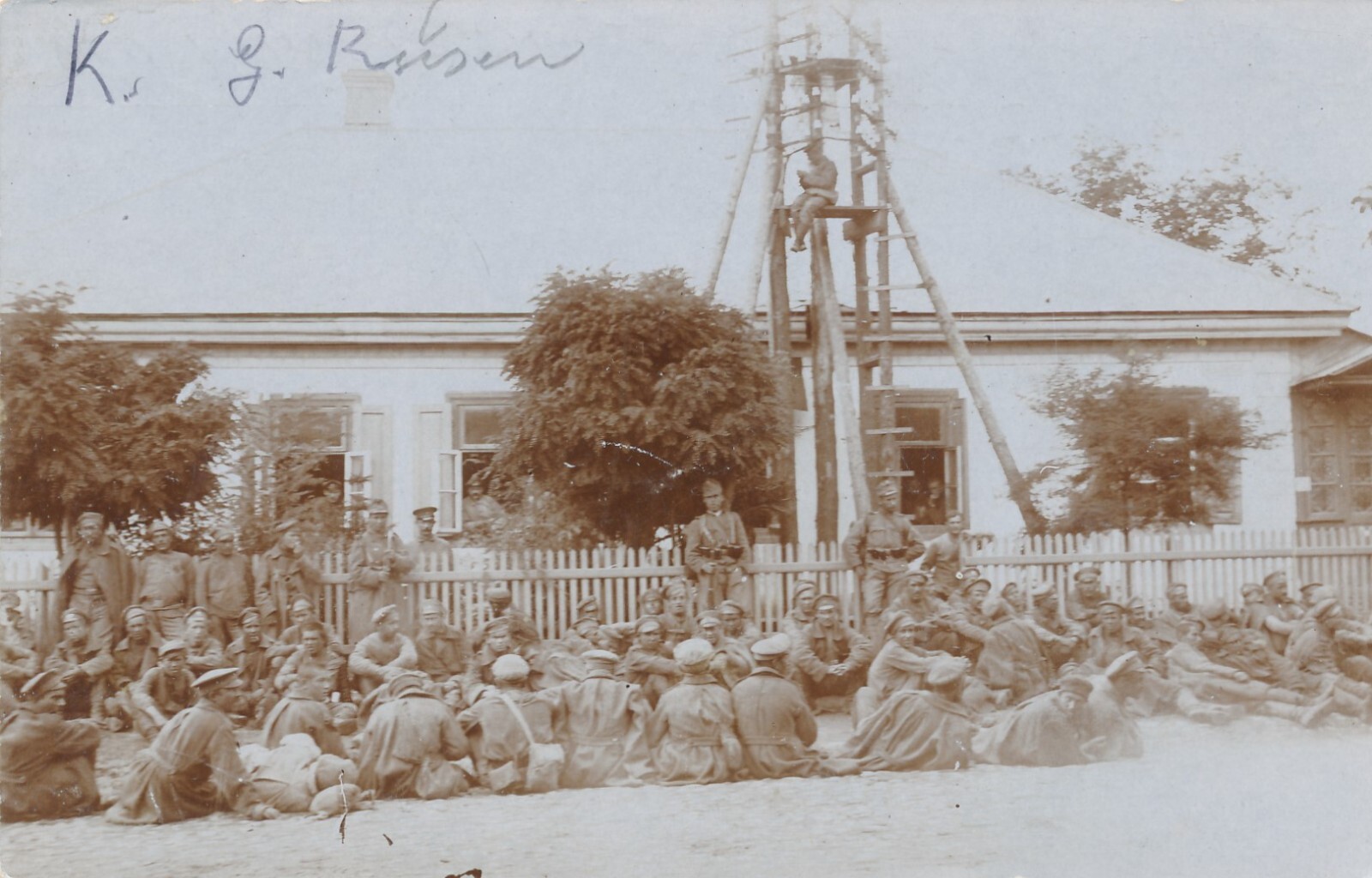 AK Gefangene Russen Wartend am Boden Ansichtskarte (14017)