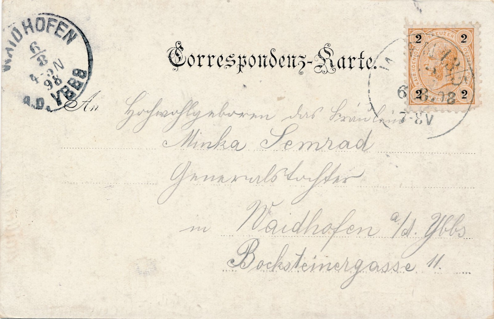 2 Kreuzer Ganzsachen - Karte aus Innichen (16281)