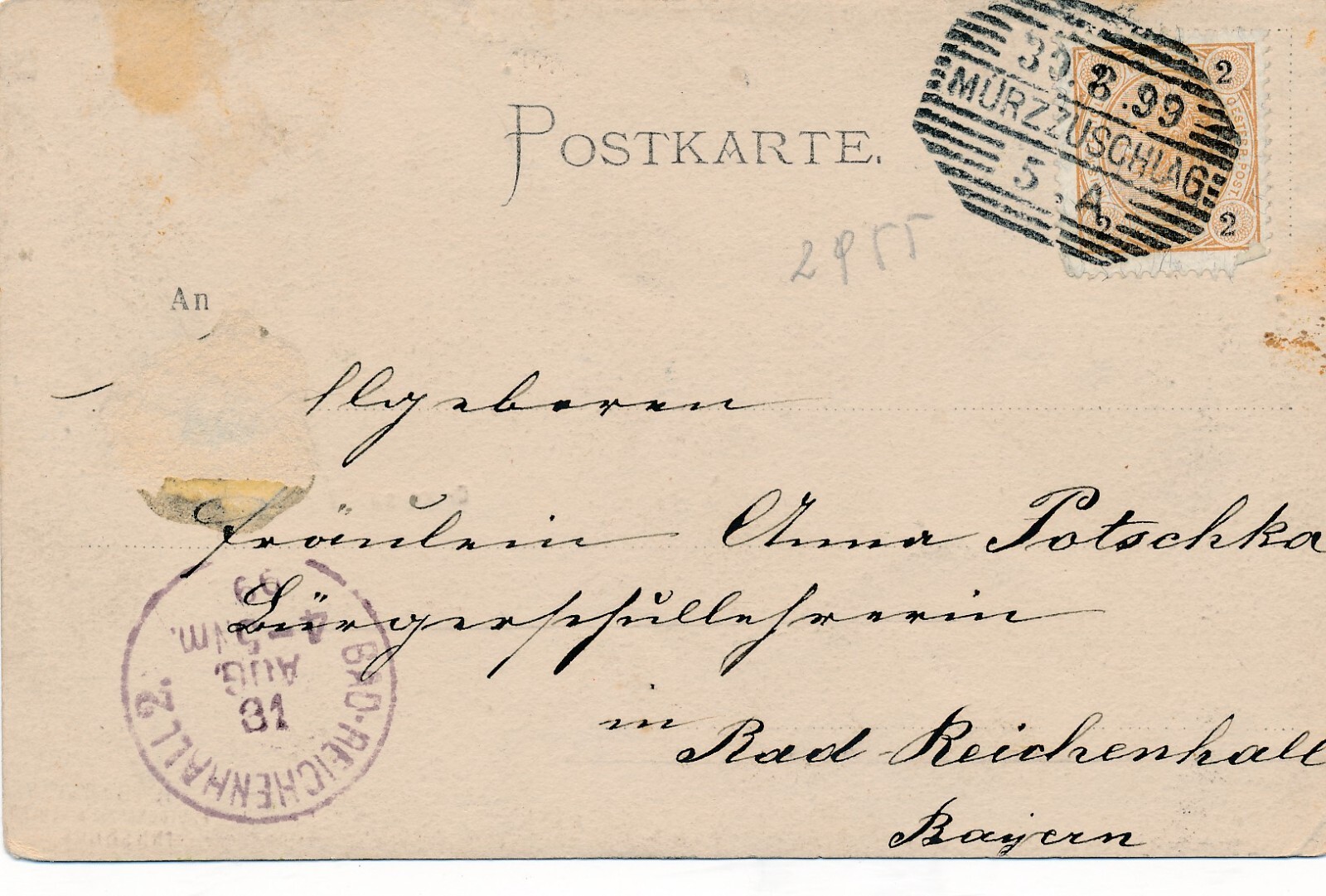 2 Kreuzer Ganzsachen - Karte 1877 aus Schlukenau (10526)