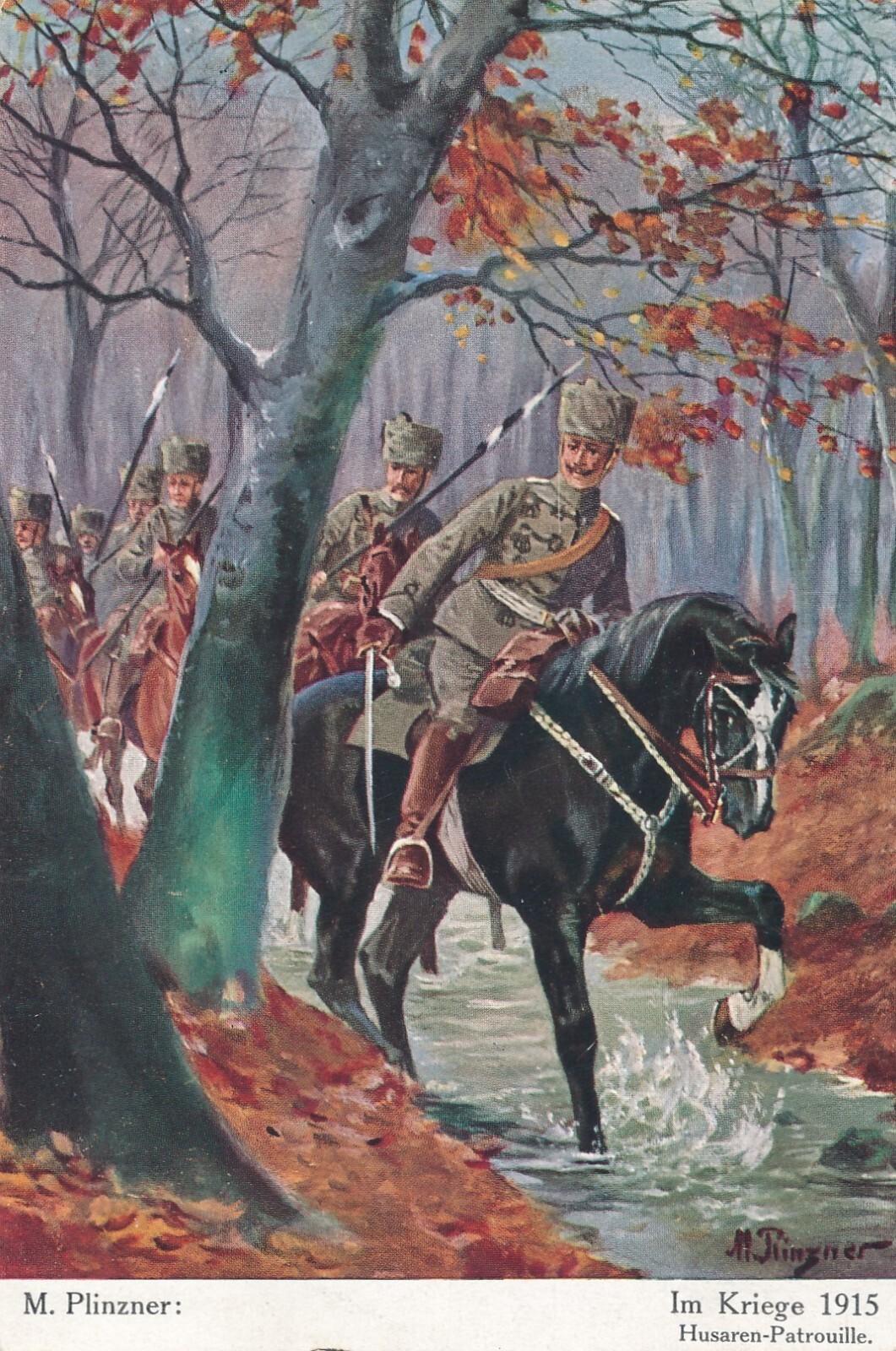 AK im Kriege 1915 mit Husaren Patrouille (6521)