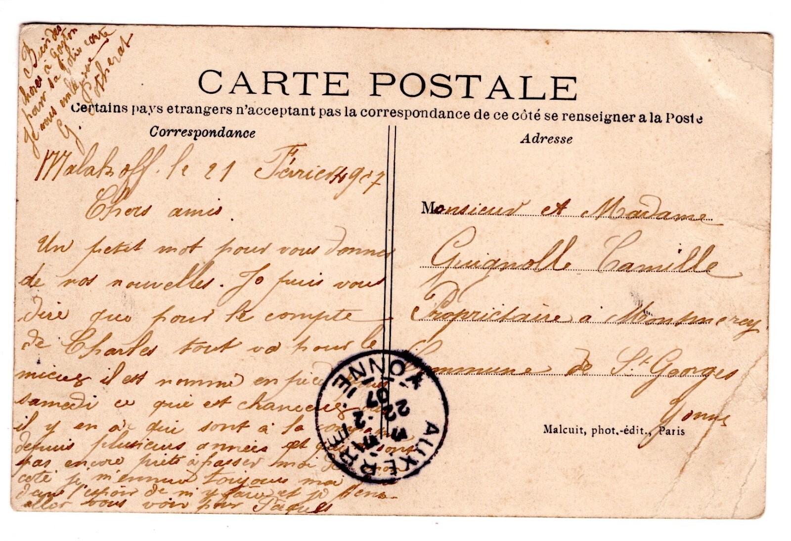 AK, Une Pensee de Malakoff, Frankreich, Ansichtskarte (S6223)