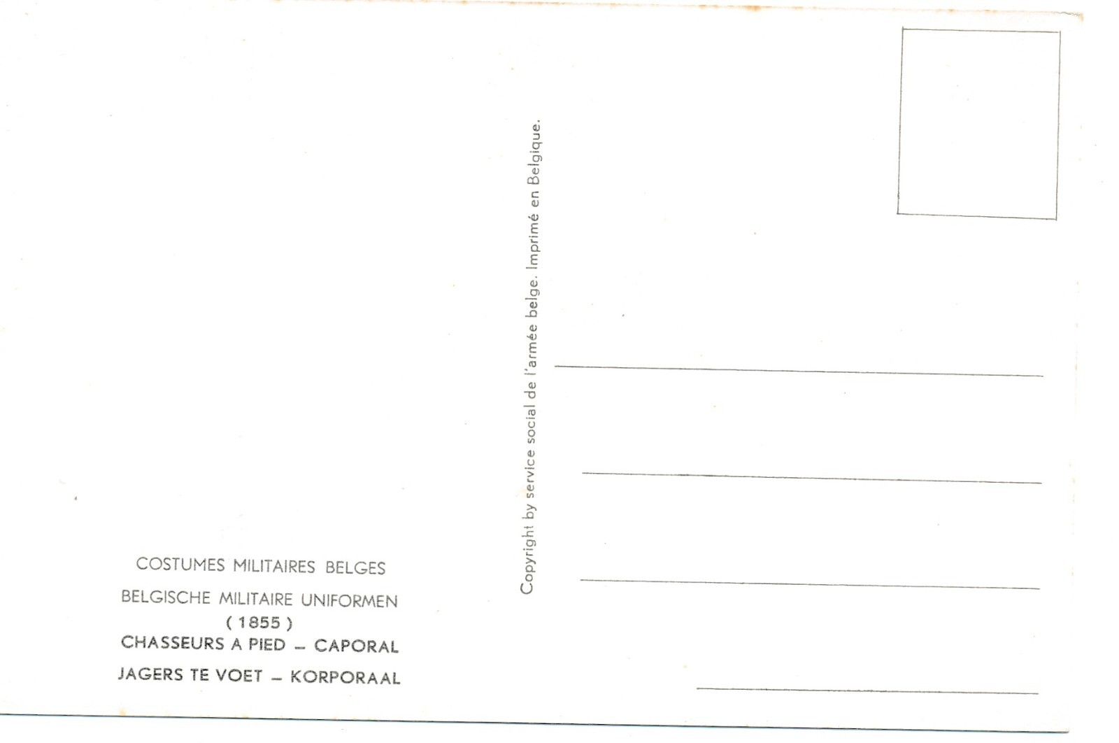 AK Uniform Belgien 1855 Chasseur a Pied Caporal Ansichtskarte (8739)