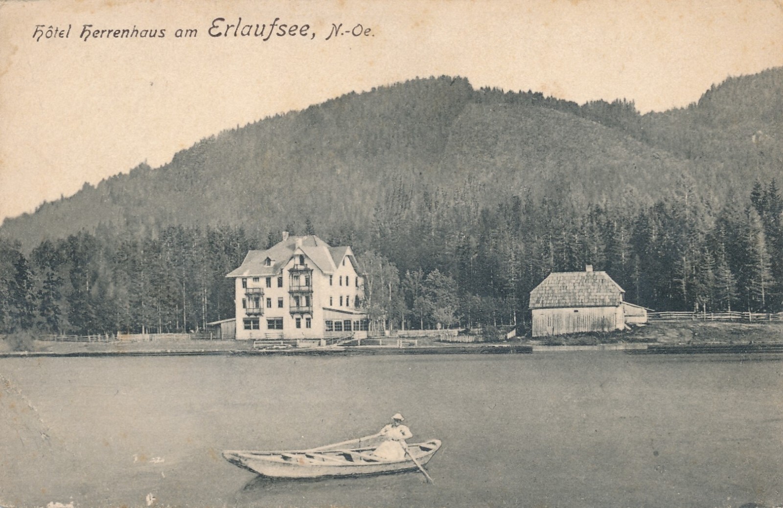 AK vom Erlaufsee mit Hotel Herrenhaus Steiermark (8021)