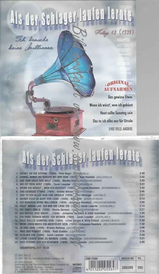 CD-- Als der Schlager Laufen Lernte Folge 13 (1939