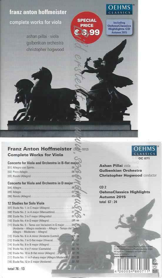 CD--Hoffmeister: Sämtliche Werke für Viola / OehmsClassics Highlights 2015