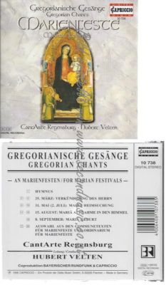 CD--HUBERT VELTEN-- GREGORIAN CHANTS FOR MARIAN FESTIVALS