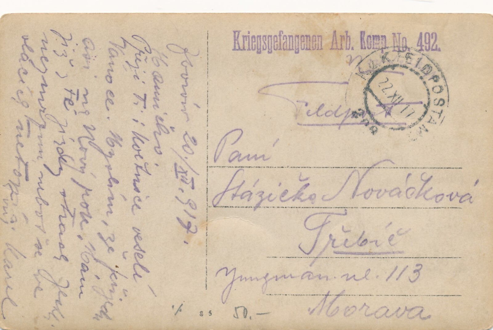 Kriegsgefangenen Arb. Komp Nr. 492 Soldaten rauchen vor dem Haus (14429)