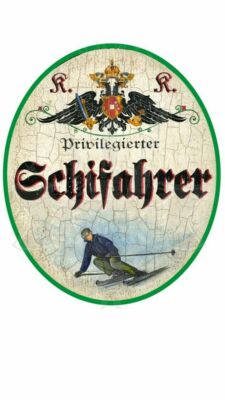 KuK Nostalgie Holzschild "Schifahrer"