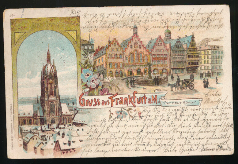 Litho-Karte gruss aus Frankfurt am Main der neue Römer Hessen (593)