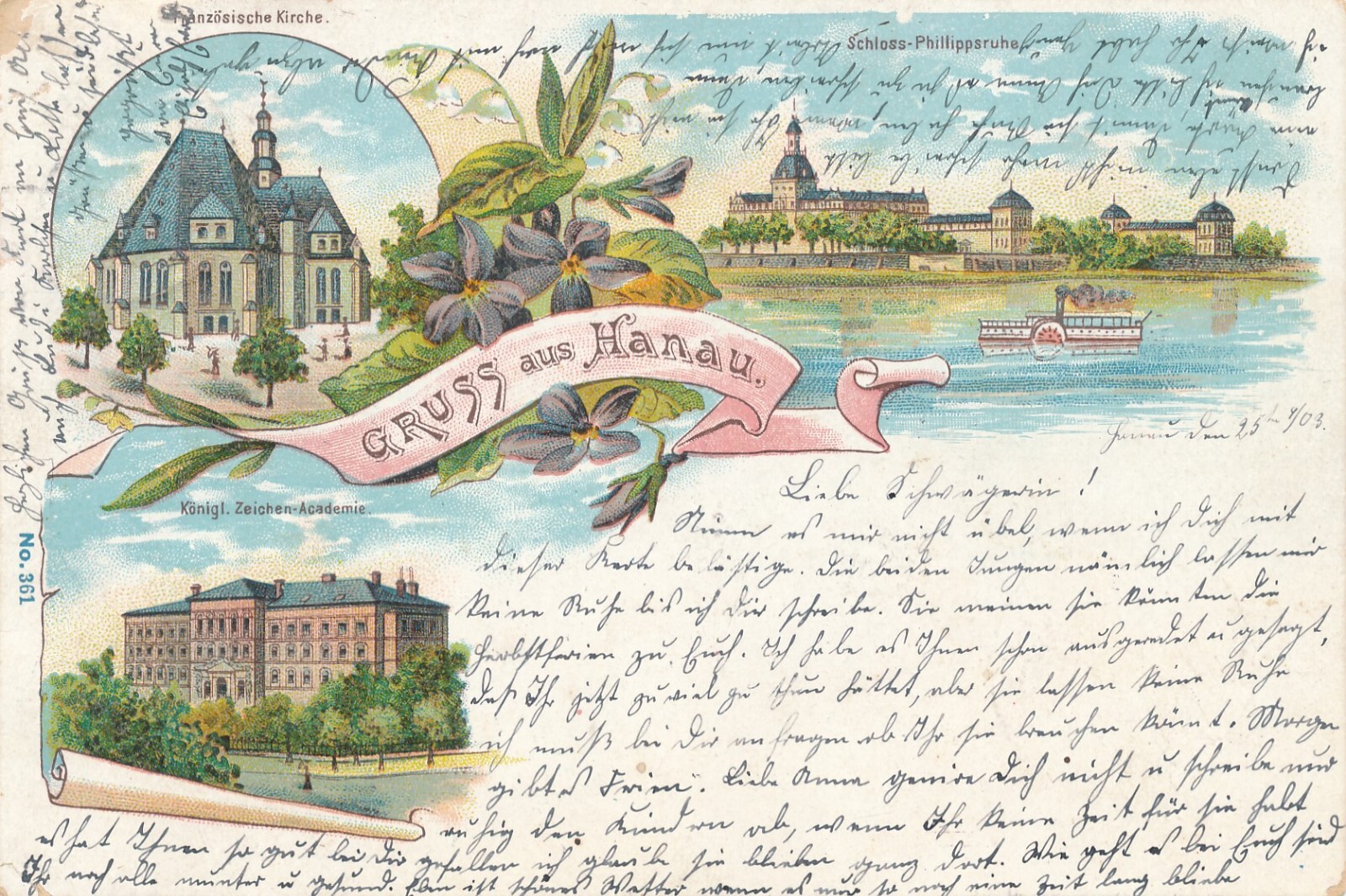 Litho-Karte, Gruss aus Hanau, Hessen (S54)