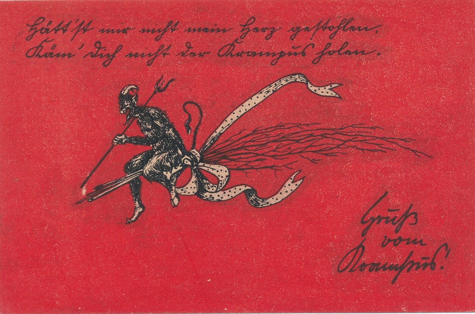 Motiv - Karte gruß vom Krampus Krampus auf Rute (7222)
