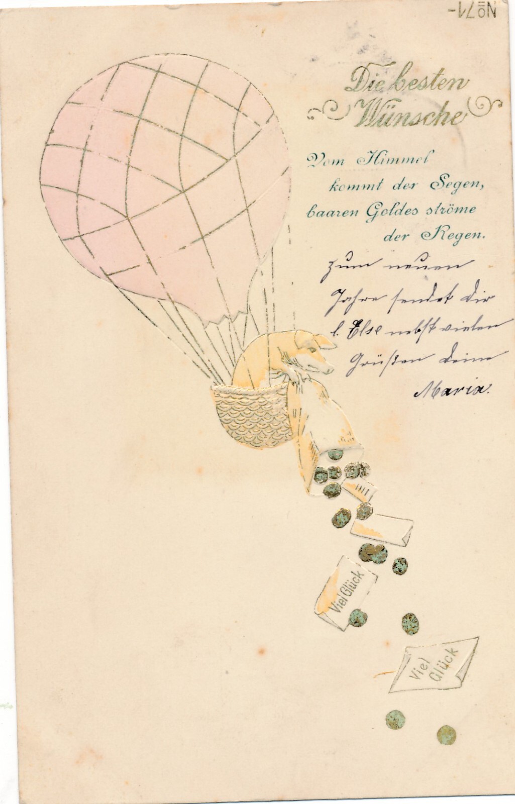 Präge - Motiv - Karte Ballon mit Schwein die besten Wünsche (11484)