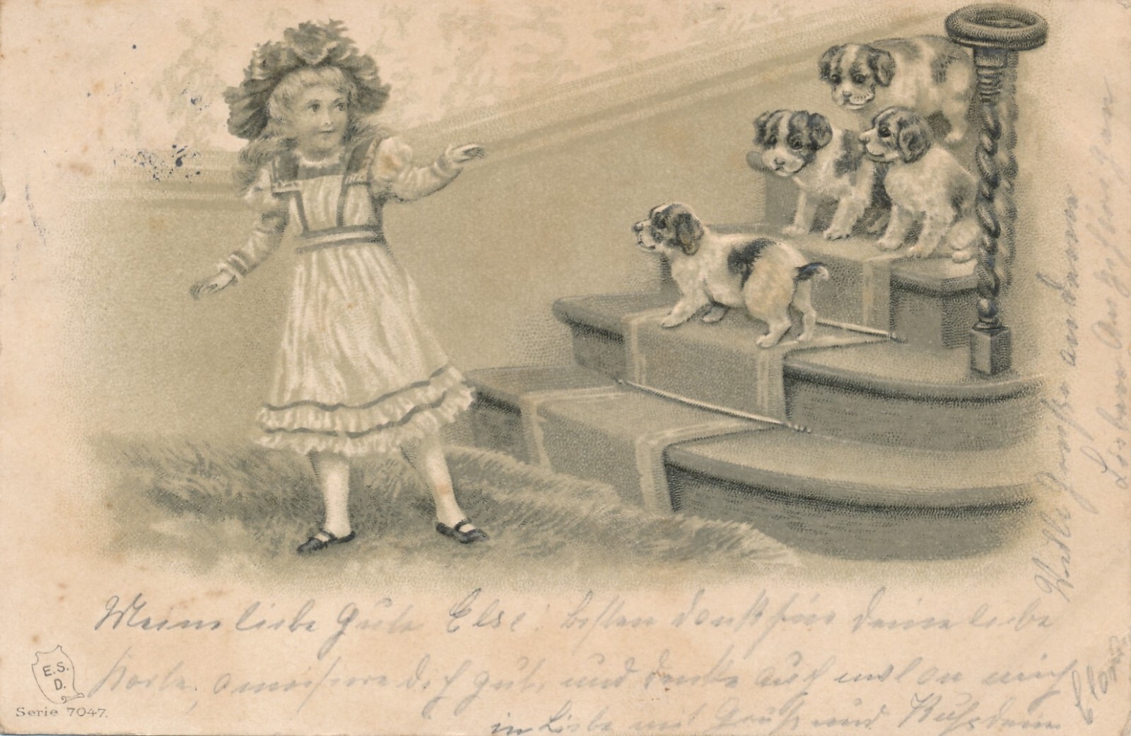 Präge - Motiv - Karte Mädchen mit Hunden Ansichtskarte (11480)