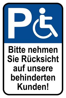 Schild parkplatz behinderte kunden parken 12x18 / 20x30 / 30x40 blech od. holz