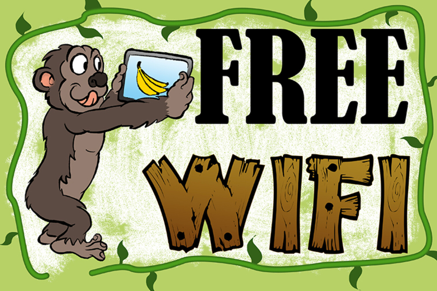 Schild Spruch Free WiFi Gratis WiFi WLan Affe Tablet JW