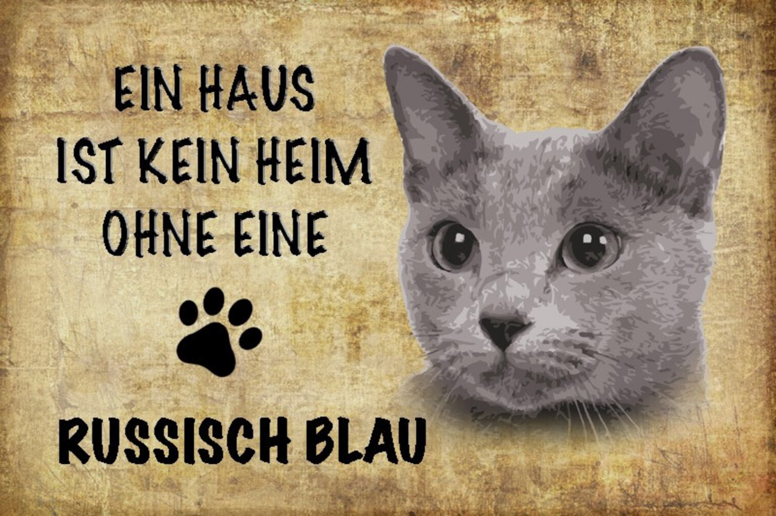 Schild Spruch Haus ist kein Heim ohne Russisch Blau Katze JW