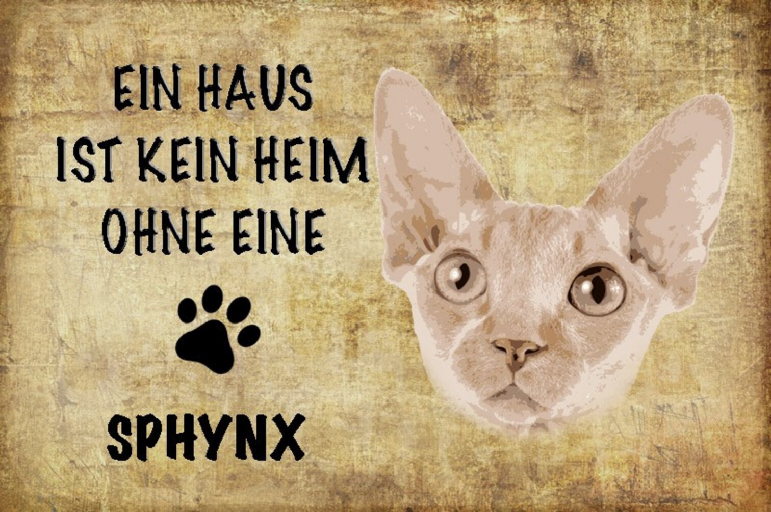 Schild Spruch Haus ist kein Heim ohne Sphynx Katze JW