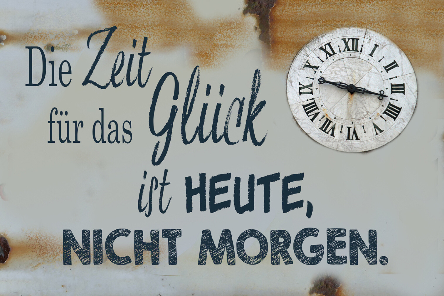 Schild Spruch Zeit für Glück ist Heute nicht Morgen JW