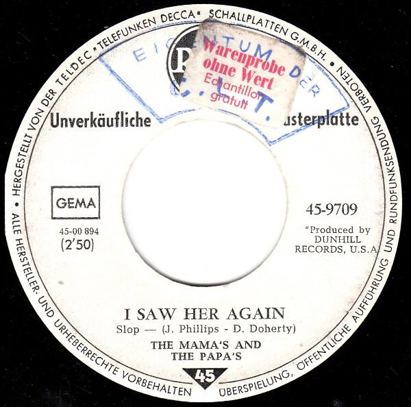 The Mamas & The Papas - I Saw Her Again (7", Single, Promo)