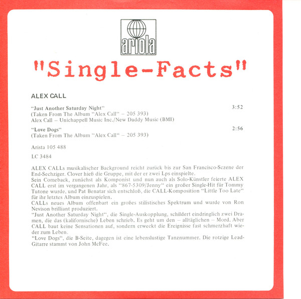 Vinyl / Alex Call - Just Another Saturday Night