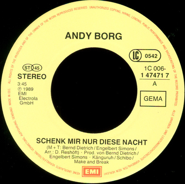 Vinyl / Andy Borg - Schenk Mir Nur Diese Nacht