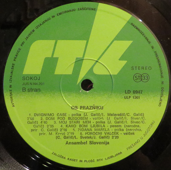 Vinyl / Ansambel Slovenija - Ob Prazniku