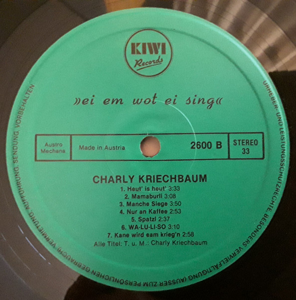 Vinyl / Charly Kriechbaum - Ei Em Wot Ei Sing