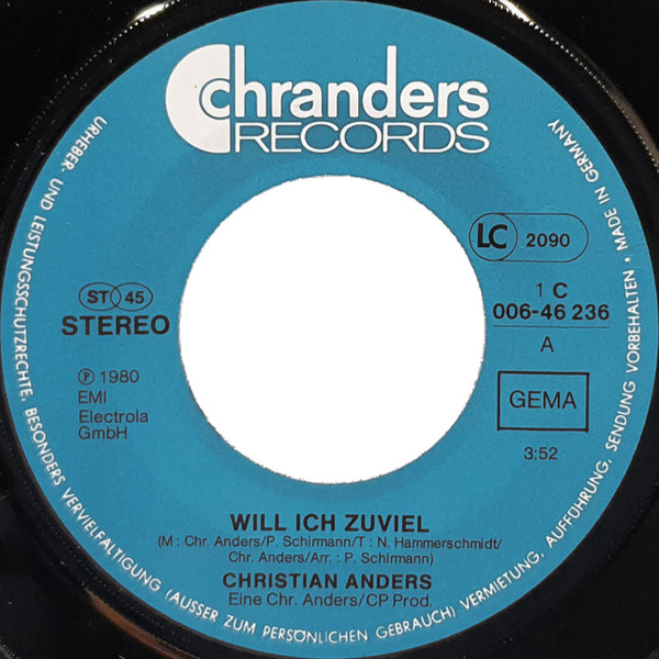Vinyl / Christian Anders - Will Ich Zu Viel? (Wenn Ich Dich Will)