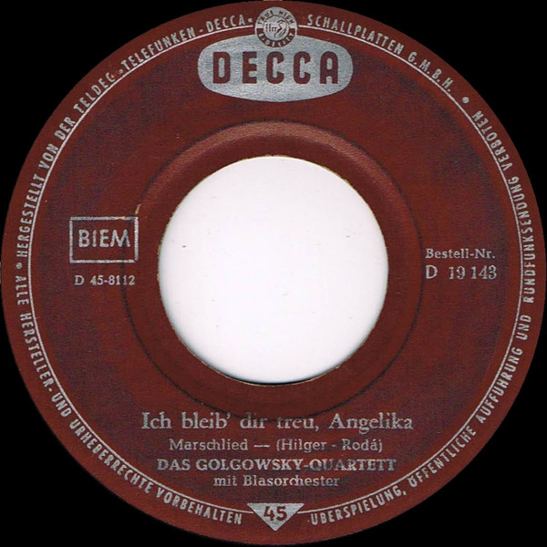 Vinyl / Das Golgowsky-Quartett* - Ich Bleib' Dir Treu, Angelika