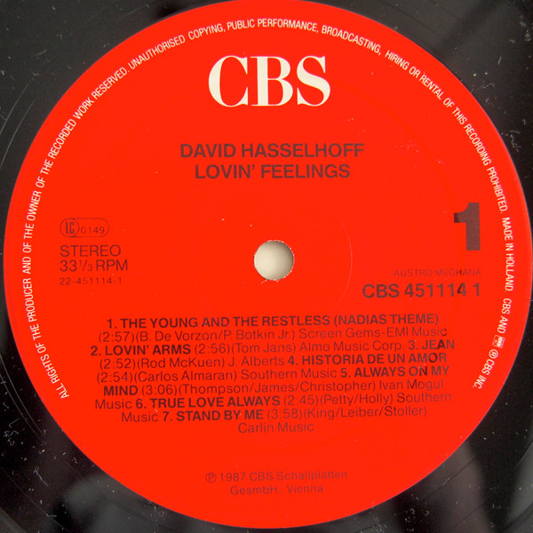 Vinyl / David Hasselhoff - Lovin Feelings
