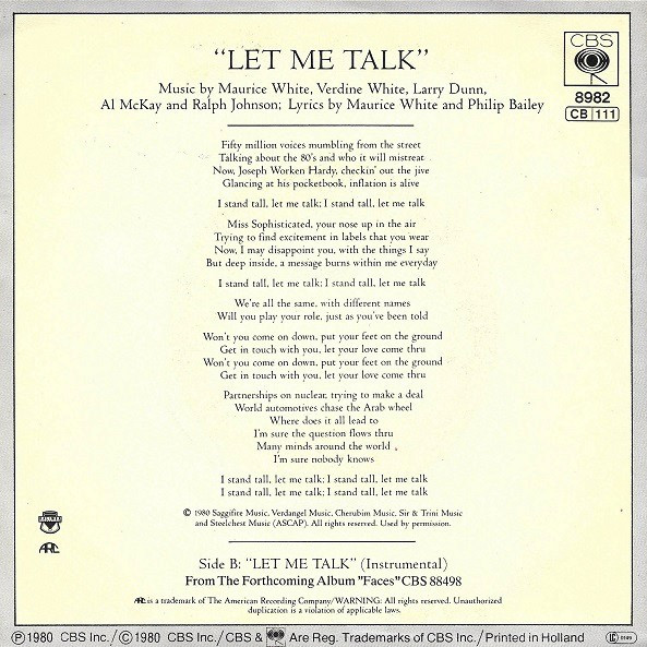 Vinyl / Earth Wind & Fire* - Let Me Talk