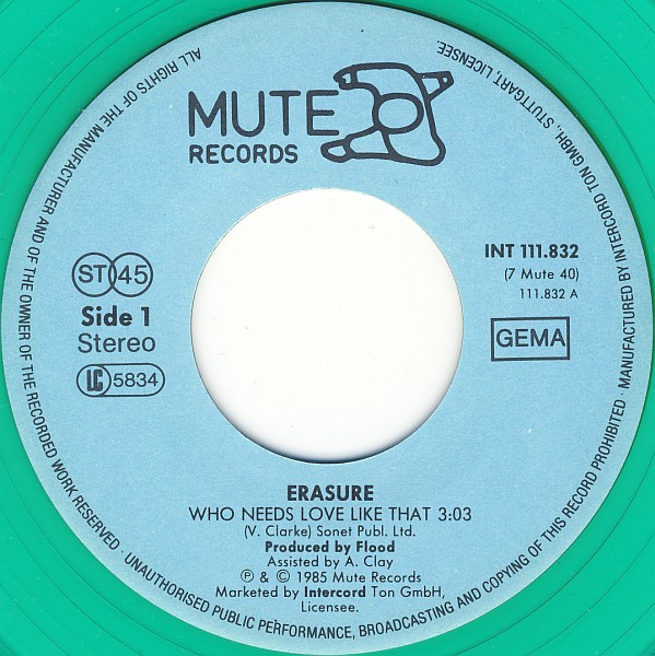 Vinyl / Erasure - Who Needs Love Like That