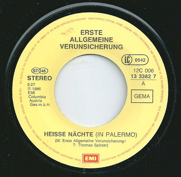 Vinyl / Erste Allgemeine Verunsicherung* - Heisse Nächte In Palermo