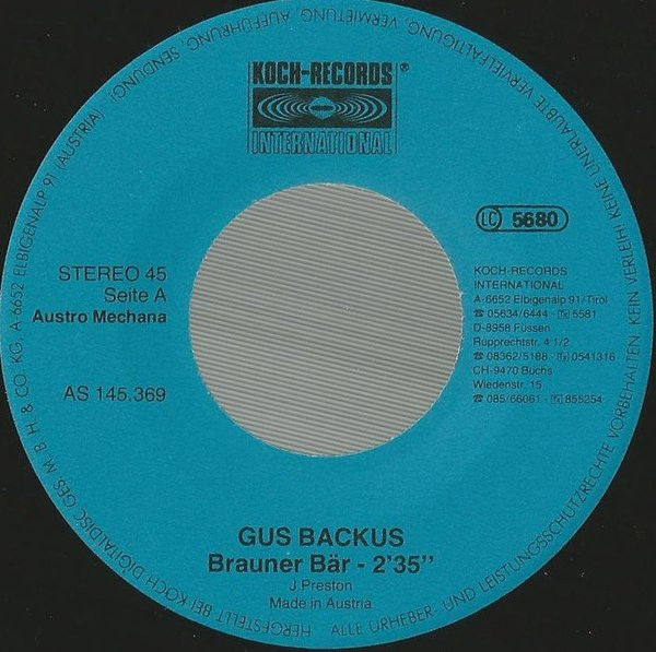Vinyl / Gus Backus - Brauner Bär / Da Sprach Der Alte Häupling