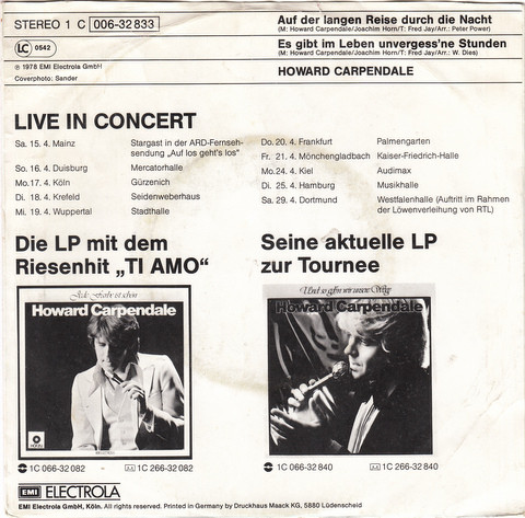 Vinyl / Howard Carpendale - Auf Der Langen Reise Durch Die Nacht