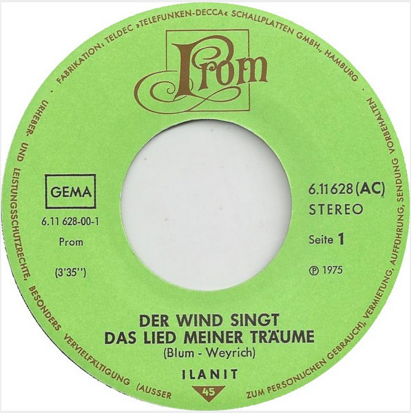 Vinyl / Ilanit - Der Wind Singt Das Lied Meiner Träume