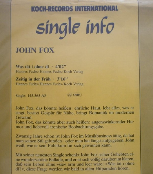 Vinyl / John Fox (4) - Was Tät I Ohne Di