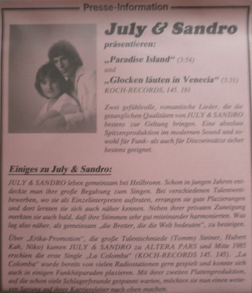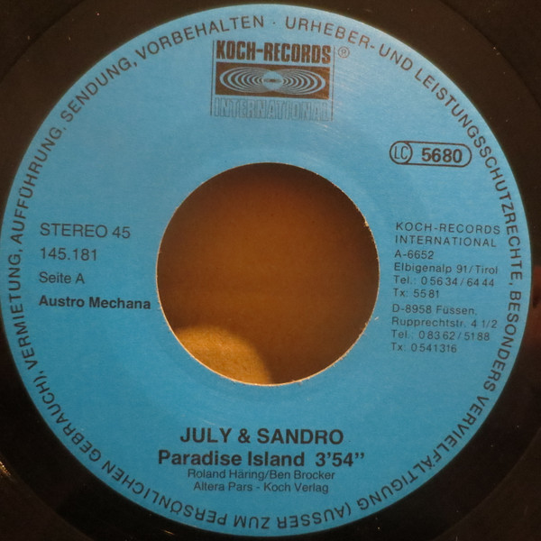 Vinyl / July & Sandro - Paradise Island