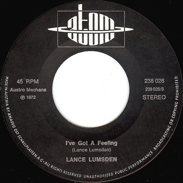 Vinyl / Lance Lumsden - I've Got A Feeling / Oh Lord