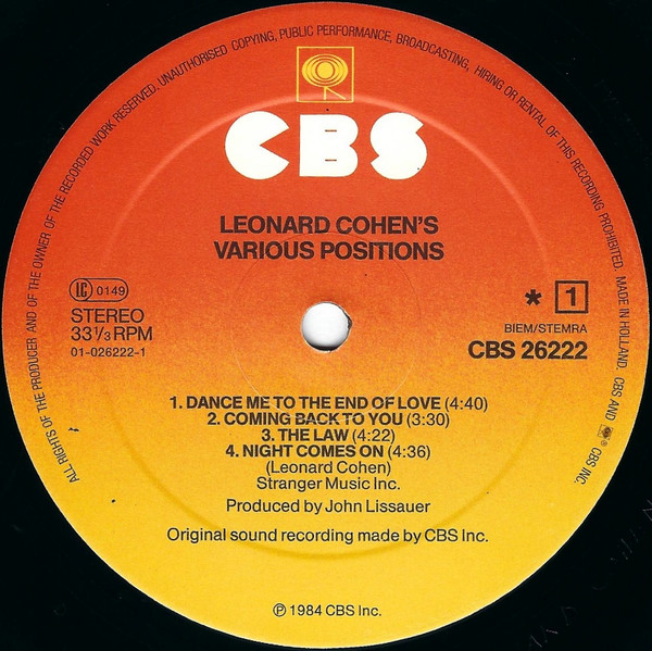 Vinyl / Leonard Cohen - Various Positions